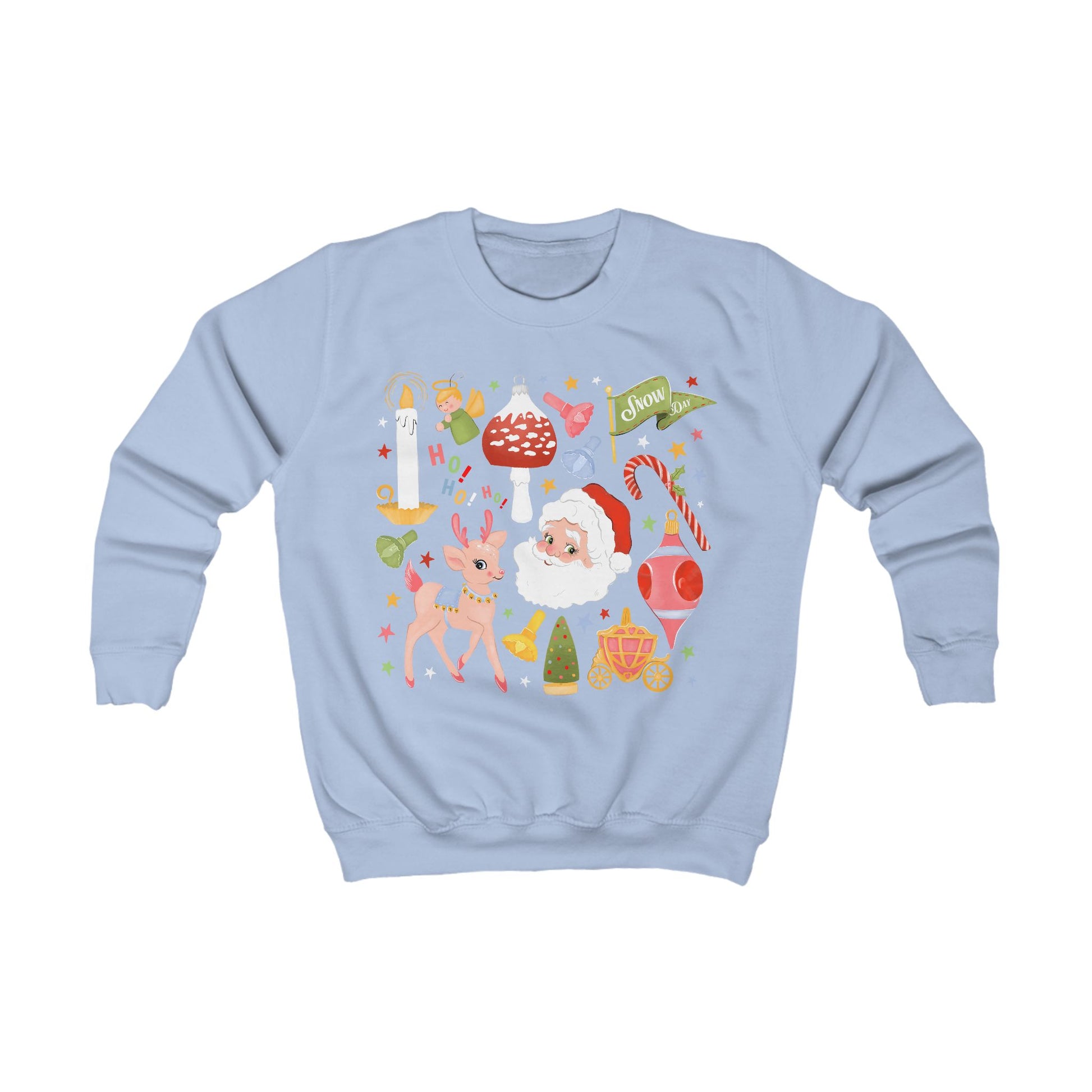 Step back in time to Christmas mornings filled with wonder and pastel dreams! 🎄✨ Our "Retro Kitsch Christmas Dream" sweatshirt is a delightful hug of nostalgia, adorned with an enchanting array of vintage-inspired ornaments. From rosy-cheeked Santa to a sweet little reindeer, whimsical toadstools, and classic candy canes, this playful design on soft pastel blue evokes the charming 'good old days' of holiday magic. Perfect for spreading festive cheer with a touch of whimsical retro flair!