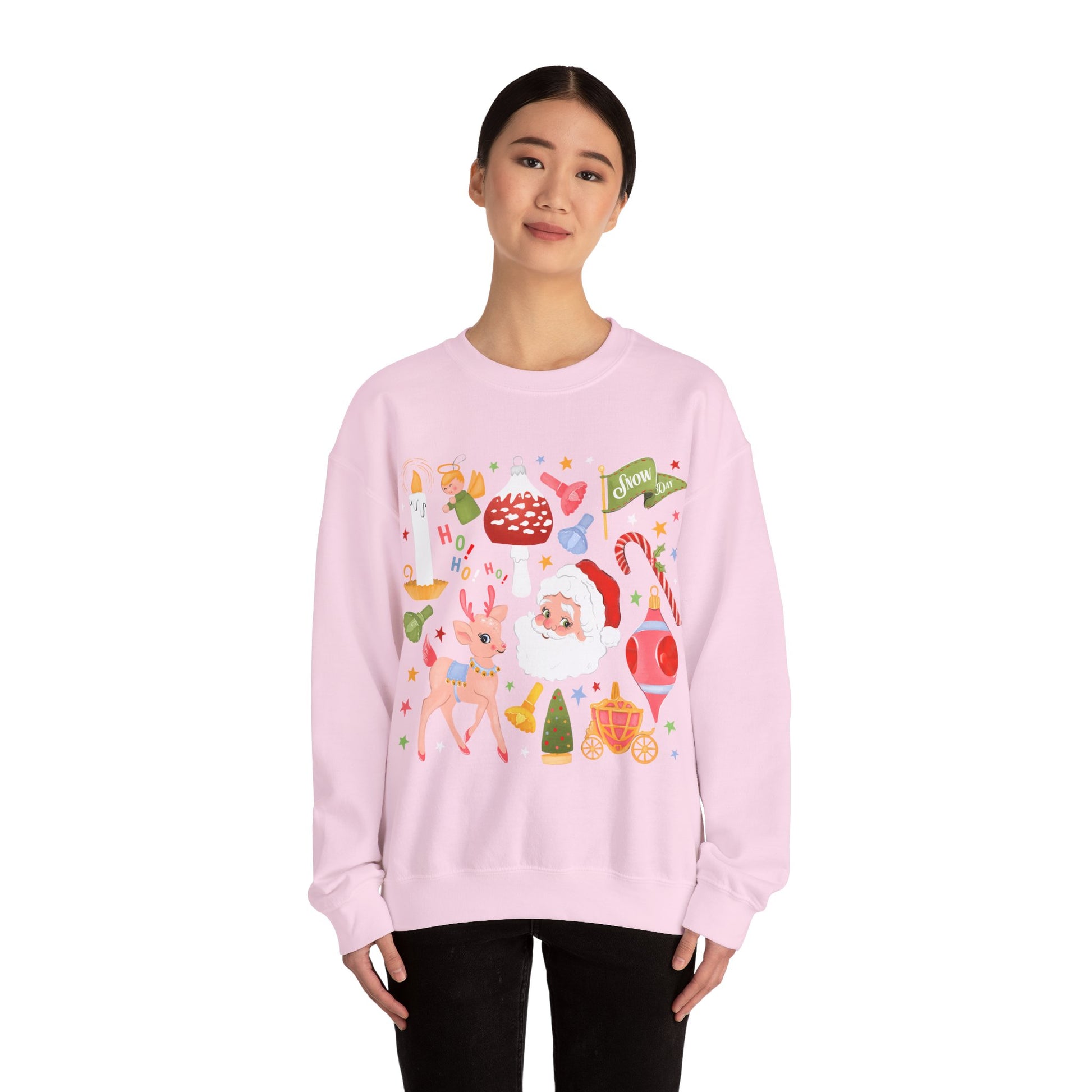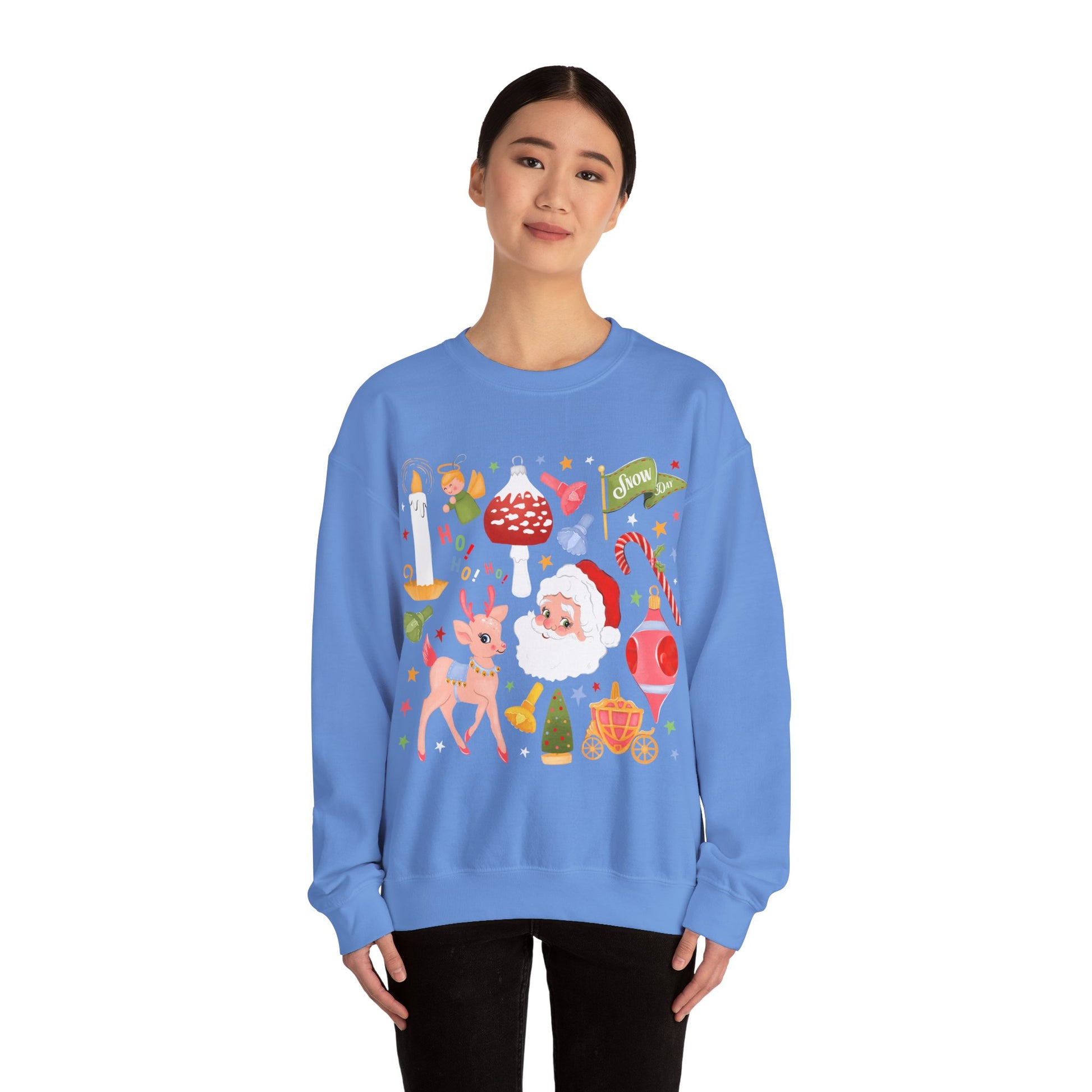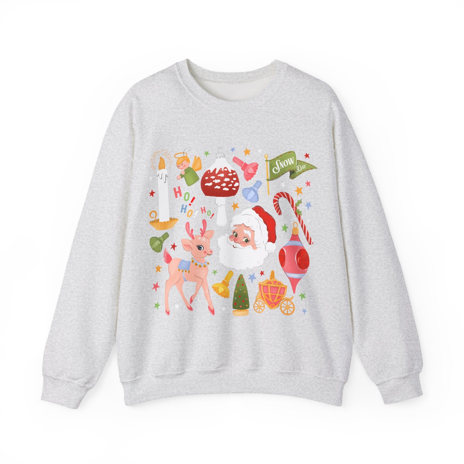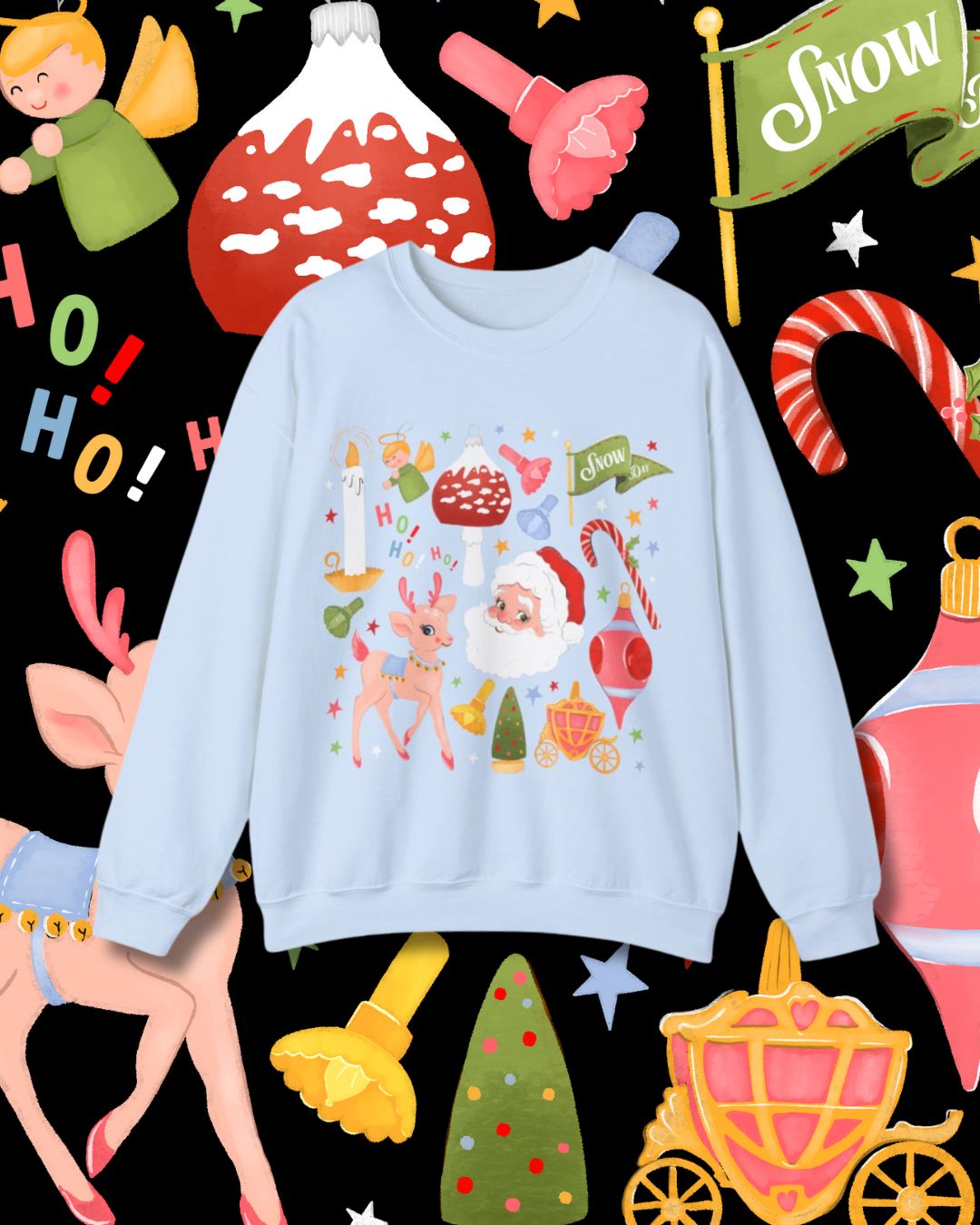 Step back in time to Christmas mornings filled with wonder and pastel dreams! 🎄✨ Our "Retro Kitsch Christmas Dream" sweatshirt is a delightful hug of nostalgia, adorned with an enchanting array of vintage-inspired ornaments. From rosy-cheeked Santa to a sweet little reindeer, whimsical toadstools, and classic candy canes, this playful design on soft pastel blue evokes the charming 'good old days' of holiday magic. Perfect for spreading festive cheer with a touch of whimsical retro flair!