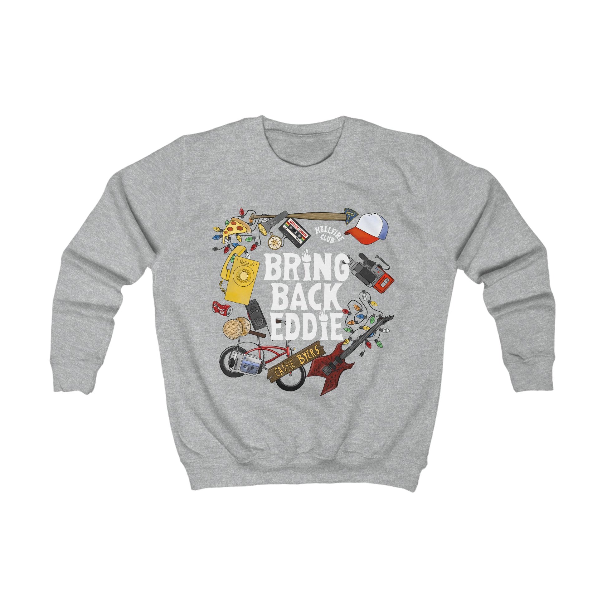Calling all fans of Hawkins, Indiana! Dive into the nostalgic world of Stranger Things with our unique unisex sweatshirt, featuring a collection of iconic props reimagined in a cool, hand-drawn doodle style. This isn't just a sweatshirt; it's a wearable homage to your favorite supernatural series!