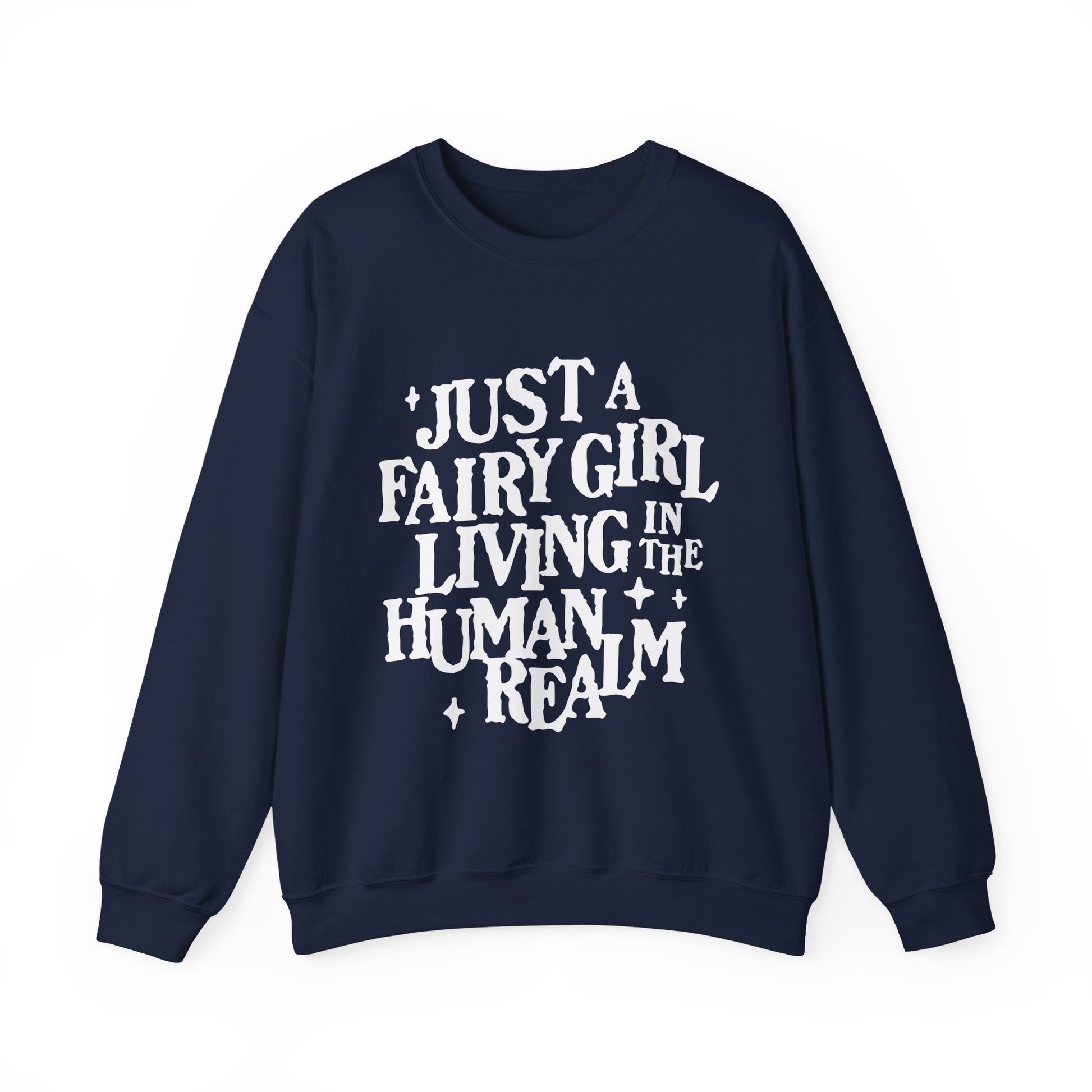 A cozy, lived-in crewneck that reads like a secret whispered between worlds. Soft and a little oversized, the sweatshirt dresses you in quiet magic — white hand-lettered type and tiny star accents declare: “Just a fairy girl living in the human realm.” Wear it on slow mornings with tea and a book, or layered for moonlit walks through city parks. The medium-heavy 50/50 blend gives warmth without bulk and the classic crew silhouette keeps the look effortless and wearable. Little details—ribbed collar, durable double-needle stitching, and ethically sourced cotton—make this a sweatshirt that’s comfortable to reach for again and again. It’s subtle, whimsical, and built to move with the life of someone who still believes in small wonders.