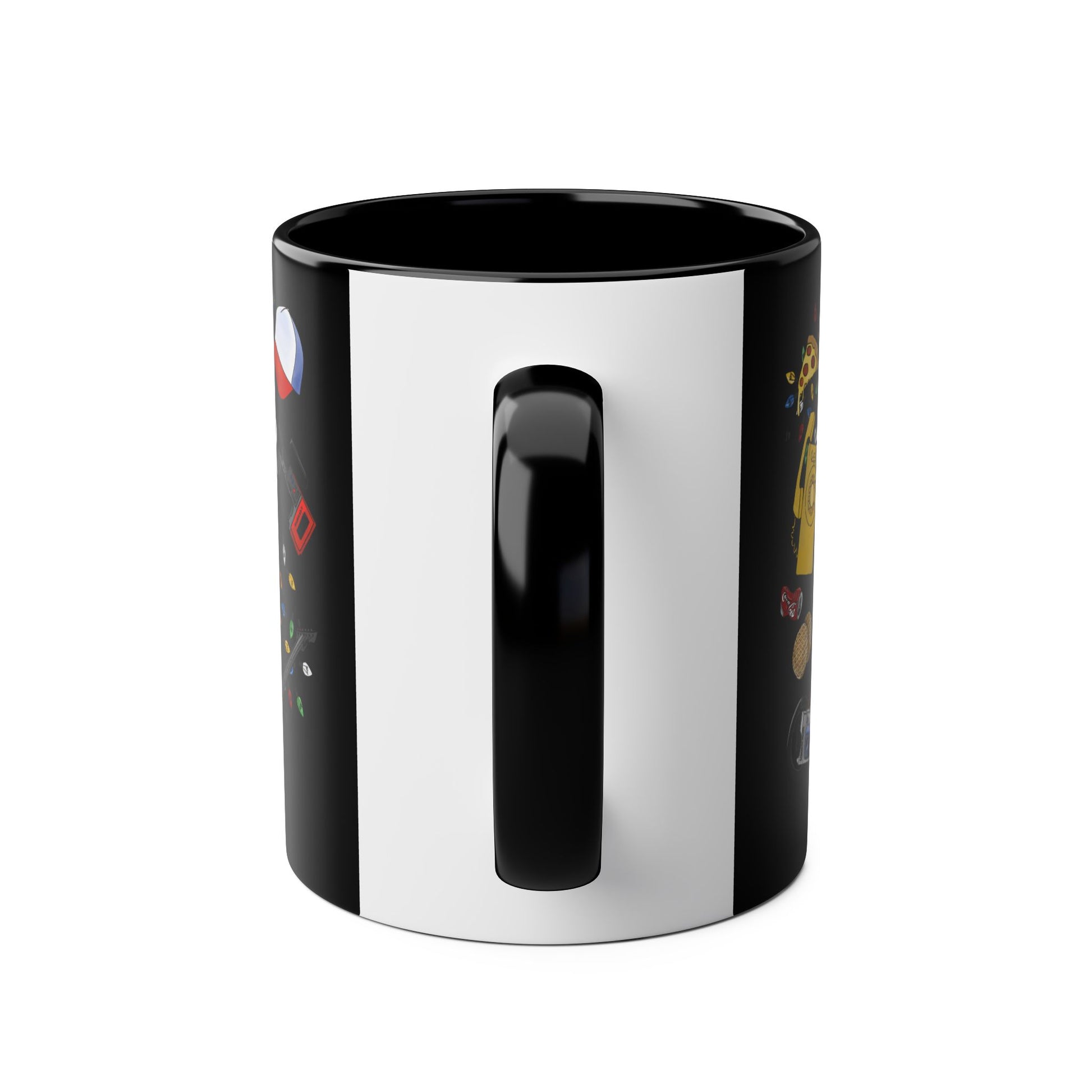 Steam rises from a warm mug as a quiet, strange-world soundtrack plays in the background. This two-tone ceramic mug wears a glossy black exterior like midnight, with a pop of color inside and on the handle. The playful collage around the phrase "I'd rather be in the Upside Down" — radios, guitars, pizza slices and retro trinkets — nods to nostalgic supernatural nights, late-night watch parties, and cozy rituals. It sits comfortably in your hand thanks to a C-shaped handle and bright glaze that keeps colors vivid sip after sip. Reach for it on binge nights, rainy mornings, or when you want to cue that eerie-but-comforting vibe for friends and fellow fans.