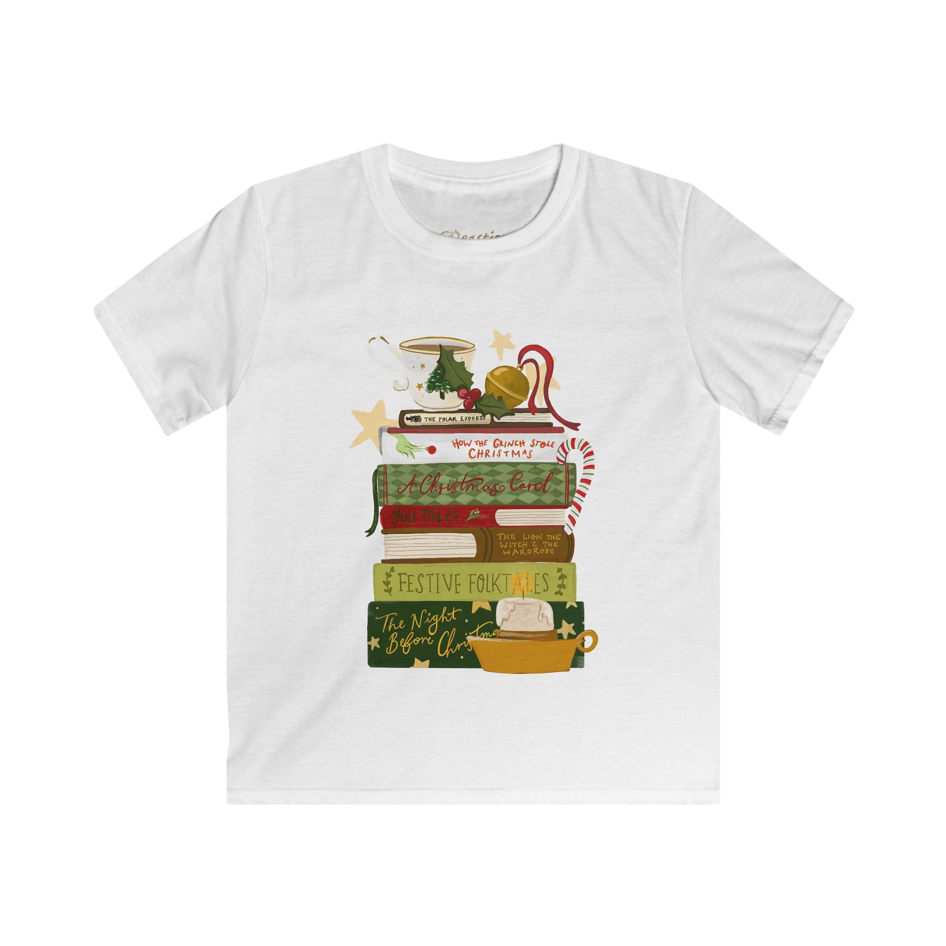 Raising a little book lover? 📚❤️ This adorable holiday t-shirt is made for the kid who always asks for "just one more chapter." With a fun illustration of classic Christmas tales, candy canes, and festive treats, it celebrates the magic of reading. Perfect for school holiday parties, library days, or winter family photos! 📸