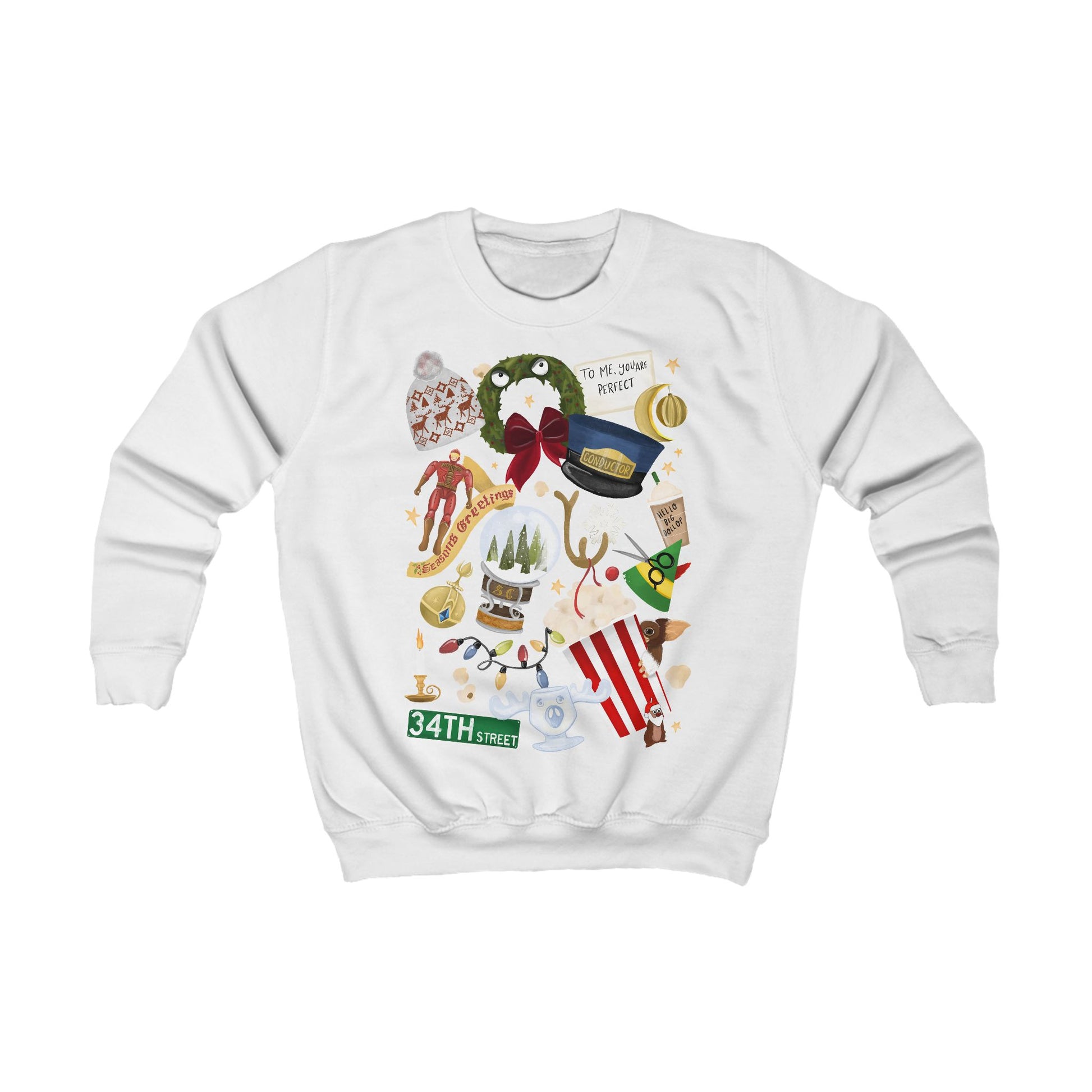 Ready for a movie night? 🎉 This super cozy kids' sweatshirt is covered in fun pictures from all the family favorite Christmas films! Your little one will love pointing out Elf's hat, Elsa's orb, the sneaky gremlin, and the nightmare before christmas man eating wreathe. It’s warm, durable, and perfect for school holiday events, family movie nights, or wearing while opening presents on Christmas morning. A great gift for young movie lovers and a perfect match for parents who love the classics. Get the whole family a matching set of this iconic movie apparel