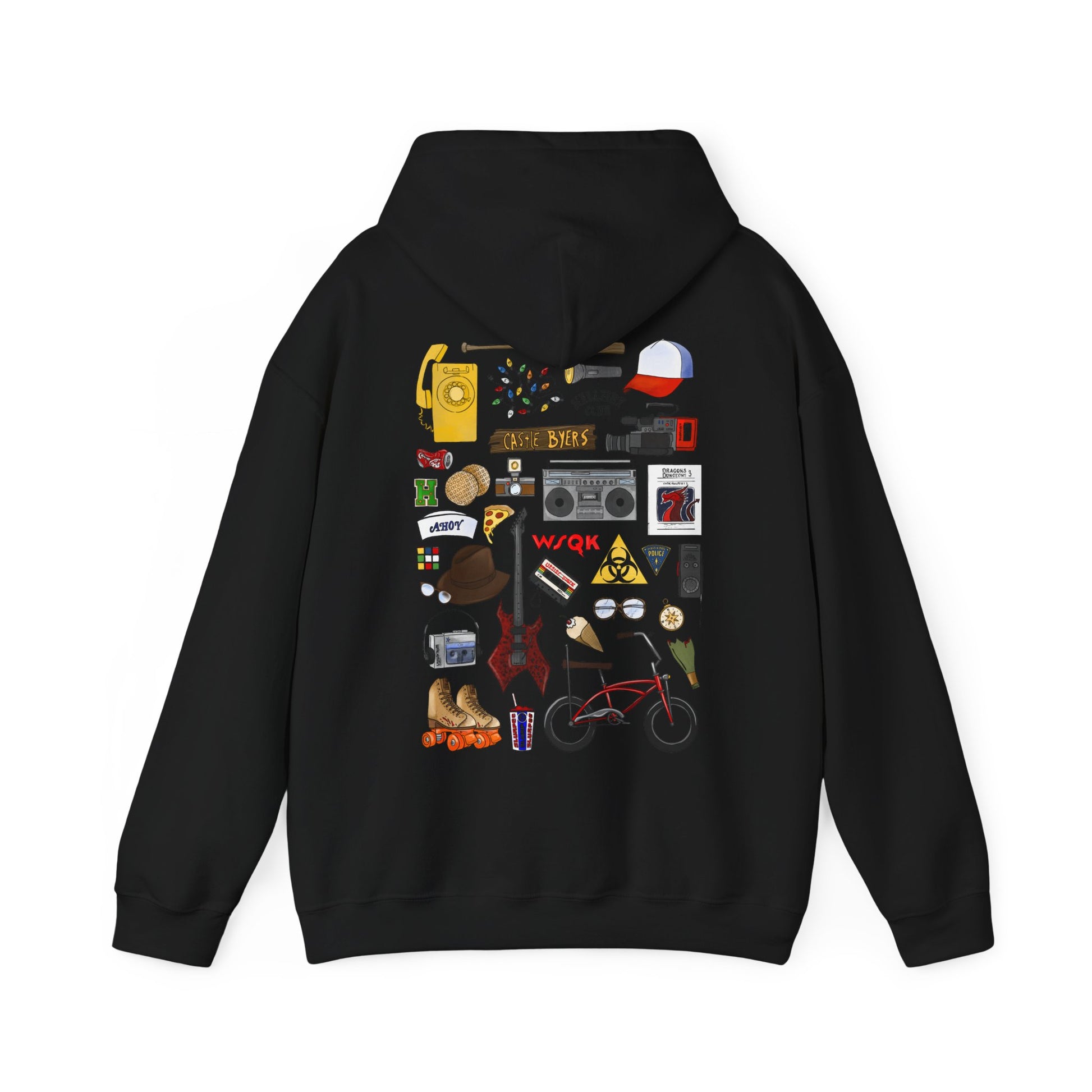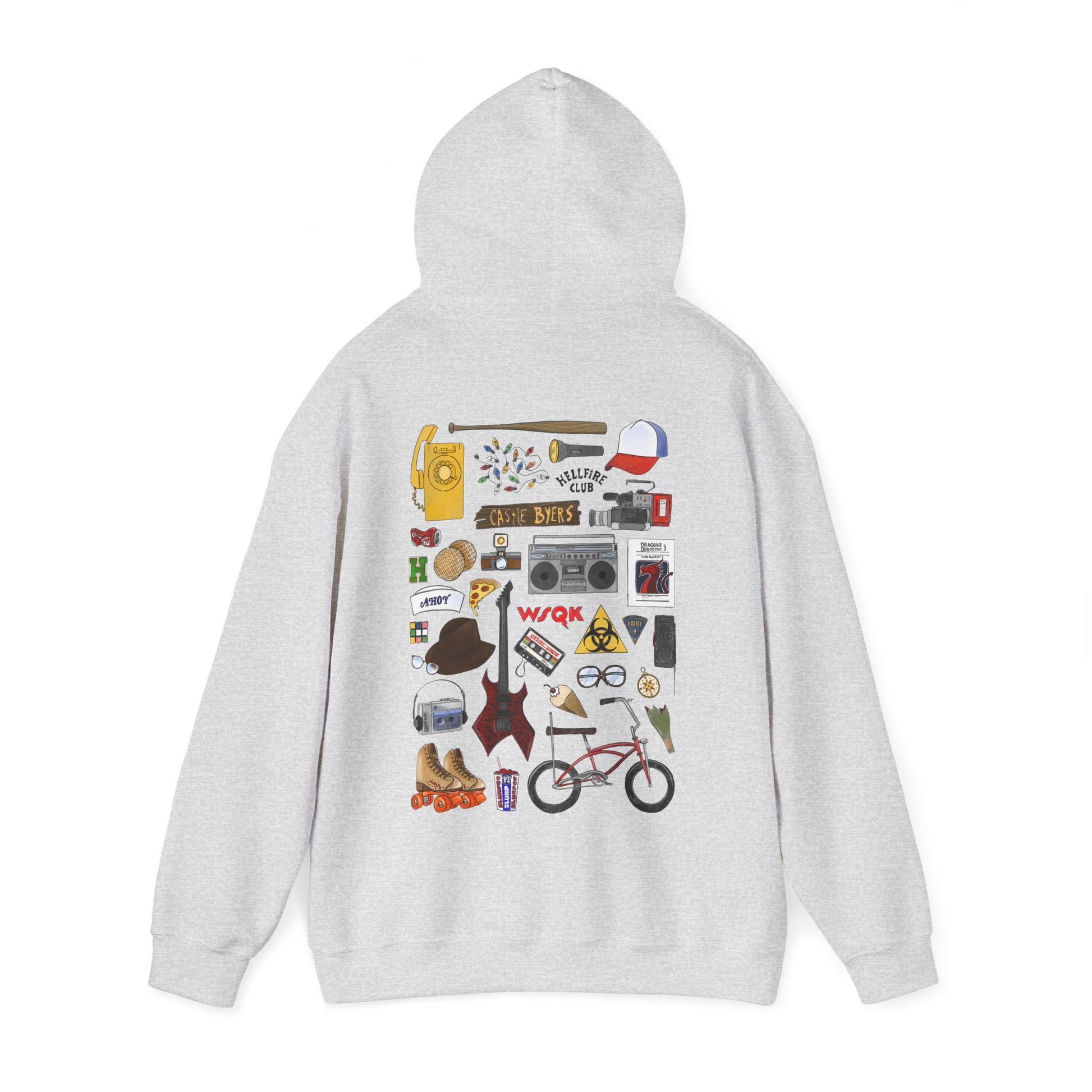 Calling all fans of Hawkins, Indiana! Dive into the nostalgic world of Stranger Things with our unique unisex sweatshirt, featuring a collection of iconic props reimagined in a cool, hand-drawn doodle style. This isn't just a sweatshirt; it's a wearable homage to your favorite supernatural series!